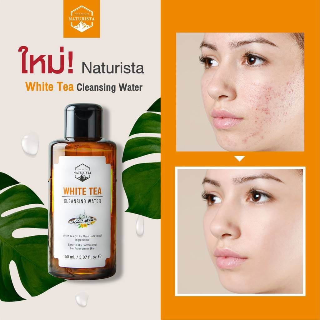 Naturista White Tea Cleansing Water คลินซิ่งเช็ดเครื่องสำอาง ทำความสะอาดล้ำลึก ด้วยเทคโนโลยี Nano Deep Clean ช่วยขจัดสิ่งตกค้างบนใบหน้าอย่างล้ำลึก ผสานคุณค่าจากเทคโนโลยี Micellar และเทคโนโลยีการทำความสะอาดถึงระดับเซลล์ผิว เอกสิทธิ์เฉพาะจาก Naturista ช่วยขจัดสิ่งตกค้างในชั้นรูขุมขน ต้นเหตุของปัญหาสิว เนื่องจากสิ่งสกปรกที่อุดตันบนใบหน้า